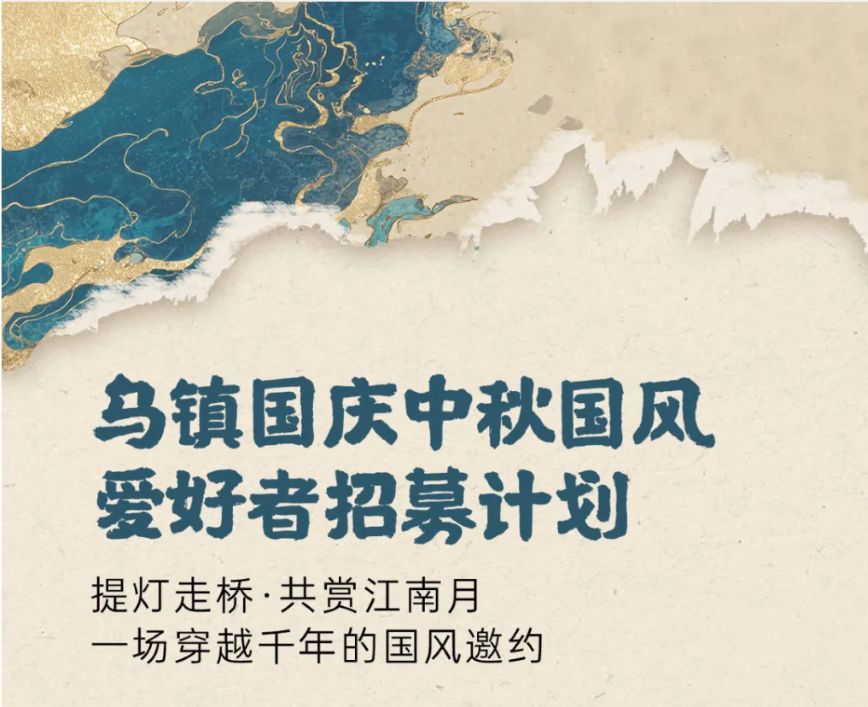 烏鎮(zhèn)國(guó)慶中秋國(guó)風(fēng)愛好者招慕計(jì)劃 提燈走橋·共賞江南月 一場(chǎng)穿越千年的國(guó)風(fēng)邀約 一盞燈,一座橋,一輪月 穿越水鄉(xiāng)夜色 共赴一場(chǎng)傳統(tǒng)與詩(shī)意并存的中秋巡游 我們尋找熱愛傳統(tǒng)文化的你 成為在烏鎮(zhèn)節(jié)日中最美的風(fēng)景線